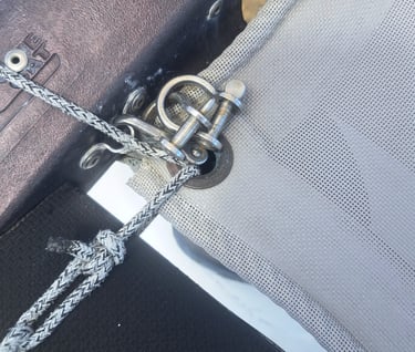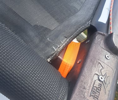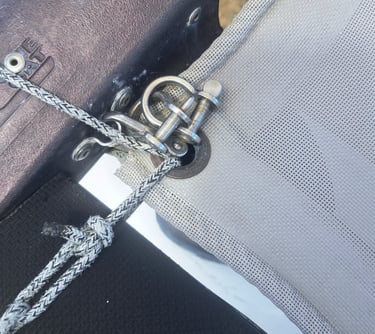 Please be aware that the wing rail connection requires the very narrow gap between the corner casting and the side beam, just above the forward pylon. This is where the trampoline slides into the forward crossbeam and the side beam.