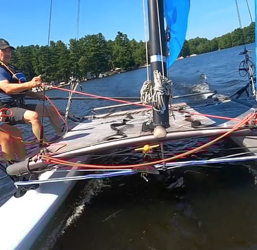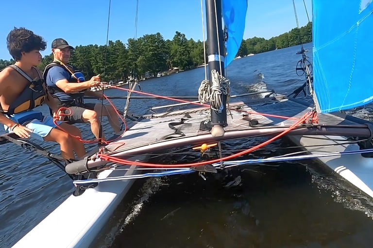 Important safety note....the wing rail assembly is designed to carry weight while the boat hulls are freely floating in the water. Sailors should not sit on the wing rails while hulls are sitting on the ground, on beach rollers, or on the trailer. Wait until the hulls are fully in the water before loading up the wing rails. The water creates a natural cushioning effect on the entire assembly, and dampens any shock of sudden loads applied to the wing rails.